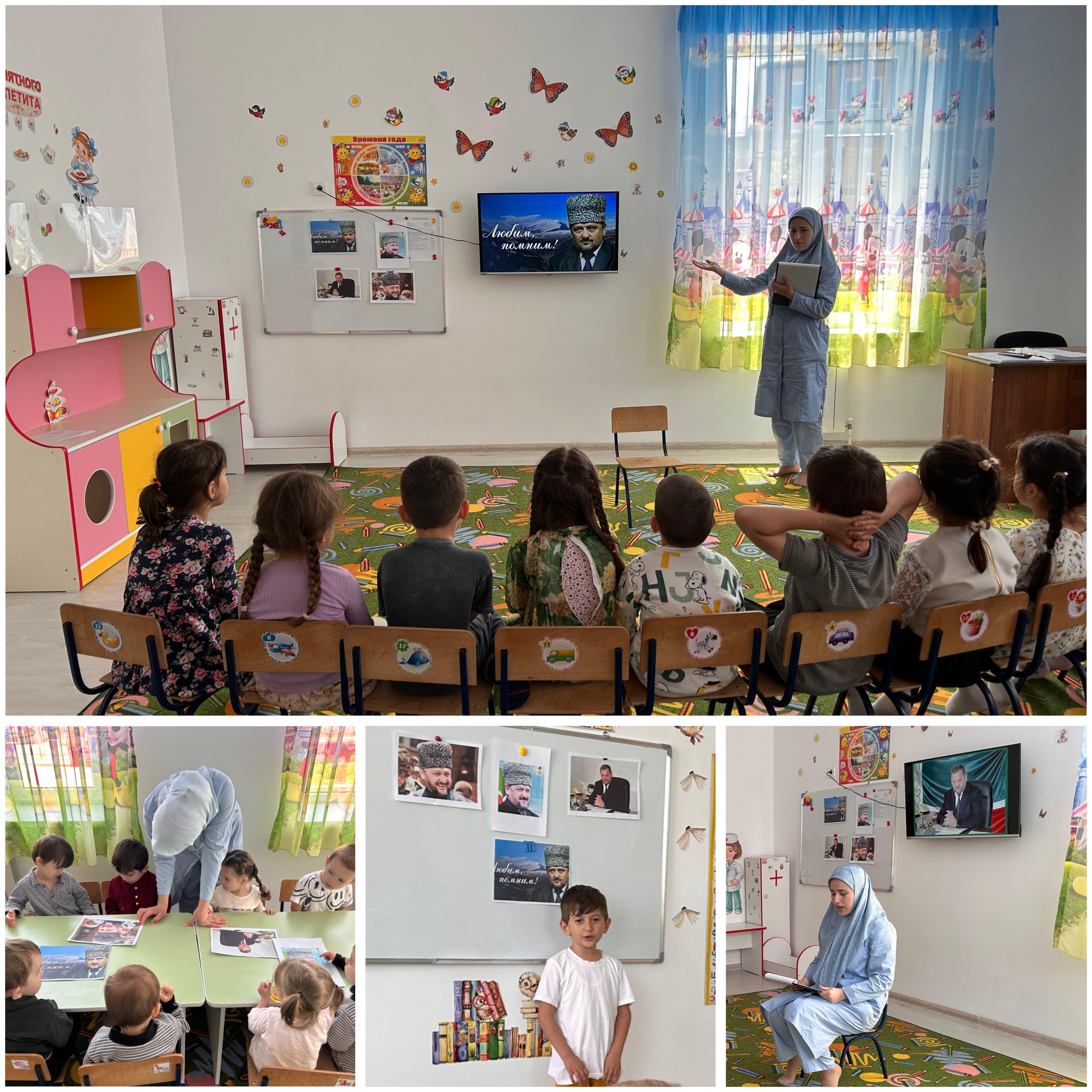 Воспитатели групп рассказывали детям о заслуге и гражданской позиции перед своим народом, который сделал все, чтобы воцарились мир и согласие на чеченской земле.